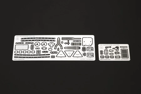 - Photo-etched parts to depict details such as wheel covers, cockpit details including ininstrument panel (early / late) and seat belts with or without pilot.