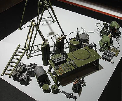 – This is a 1/35 scale plastic model assembly kit recreating a WWII German field maintenance team and their equipment.