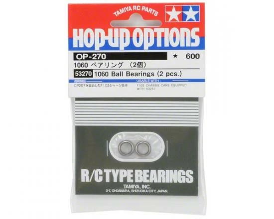 This is a set of two replacement Tamiya 1060 Metal Shielded Bearings, and are intended for use with the steering rack on the Tamiya TRF801Xt 1/8 Truck and TRF801X 1/8 Buggy.