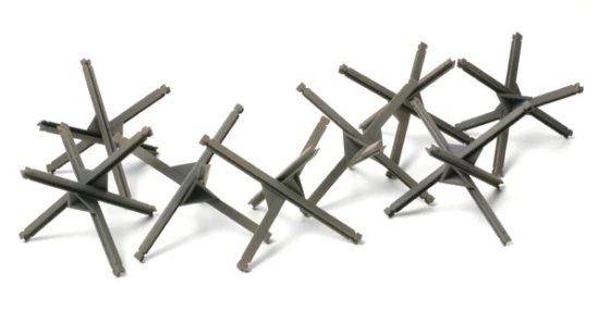 - Set includes anti-tank barricades made from train rails, as well as wooden pegs and pyramid shaped barricades