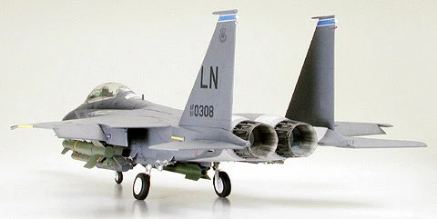 The McDonnell Douglas F-15 Eagle is regarded as one of the most capable twin-engine air-superiority fighters in the world today. Ever since its maiden flight in July 1972, this record breaking Mach 2.5 fighter has been a yardstick for jet fighter design. In the early 1980’s, the Air Force requested McDonnell Douglas to modify their F-15 fighter into a dual-role aircraft to be known as the F-15E “Strike Eagle” for use as an air-to-air fighter, and for air to ground attack missions. This new version was designed to penetrate deep into enemy territory unescorted, and strike military targets with pinpoint accuracy. The strike eagle employs two highly reliable Pratt & Whitney F100-PW-229 engines and was designed specifically as a two-person crew of pilot and weapons system officer. The LANTRIN (Low Altitude Navigation and Targeting Infra-Red for Night) system enables the Strike Eagle to operate at night and in bad weather. The Strike Eagle can also be employed with up to an 11-ton payload and can carry the GBU-28 Bunker Buster, a guided bomb developed to destroy strengthened underground bunkers. The Strike Eagle was first deployed in December 1989. During the Gulf War in 1991, 2 squadrons of 48 F-15E Strike Eagles demonstrated their power as multi-purpose fighter/attack planes.