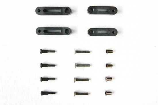 Use these upper arm parts to change the camber on the GF-01 chassis so it is negative 3 degrees front and rear (kit-standard camber F: +1, R: -1). Doing so helps provide stability on low-grip surfaces, and gives sharper steering response.