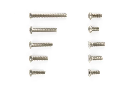 This is a Titanium Screw Set for M-06 chassis. This set will save you approximately 20g in comparison with the kit-standard screws. There are a total of 84 screws included in the set.