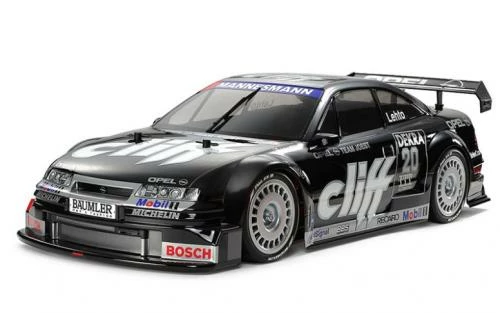 Nothing screams classic 1990’s touring car DTM racing like the Opel Calibras that tore up racing circuits across Germany. Tamiya brings back a fan favorite with this R/C assembly kit that recreates the Opel Calibra V6 Cliff, which was one of the many teams that raced Opels during the 1990’s. The polycarbonate body is mounted on the TT-01 Type-E chassis, for ease of assembly. The Opel Calibra V6 Cliff was previously released on the Tamiya TA-02 chassis during the 1990’s R/C touring car boom.The Opel Calibra V6 Cliff took part in the 1995 running of the Deutsche Tourenwagen Meisterschaft (DTM) series. Entered by Joest Racing with the driver JJ. Lehto, the car was powered by a 2.5-liter V6 engine capable of 420 hp. The distinctive black body with the Cliff logo caught people’s eye, and this car showed off race pace strength in DTM races