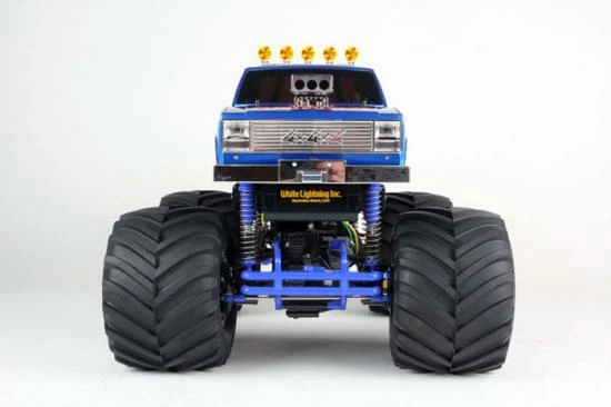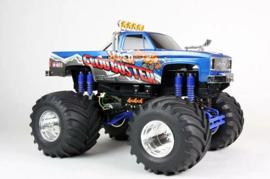 The Super Clod Buster is back! This monster truck features a body that was inspired by classic pick-up trucks from the 1980 s, giving it a realistic appearance. The front grille, air intake and roll bar are recreated with metal-plated parts. The truck also features a twin-motor dual gearbox 4WD drivetrain, 8 coil spring dampers and massive 165mm diameter tires, as well as a 4-wheel drive steering system to help the model navigate tight corners.