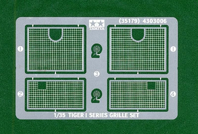 This set is for use with Tamiya 1/35 Tiger I Late Version (35146), Sturmtiger (35177) and Tiger I Miid Production (35194).