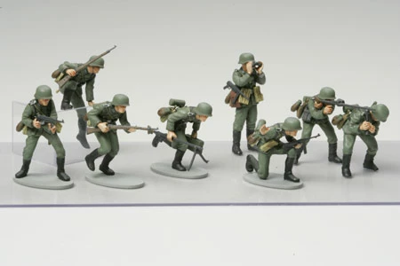 Tamiya introduces a set of 15 high quality plasticassembly 1/48 scale figures. Models depict 10early WWII style German infantry in charging andfiring poses as well as 5 tank crewmen that makeperfect accessories for AFV models. Setincludes separate plastic weapons andequipment for added realism.